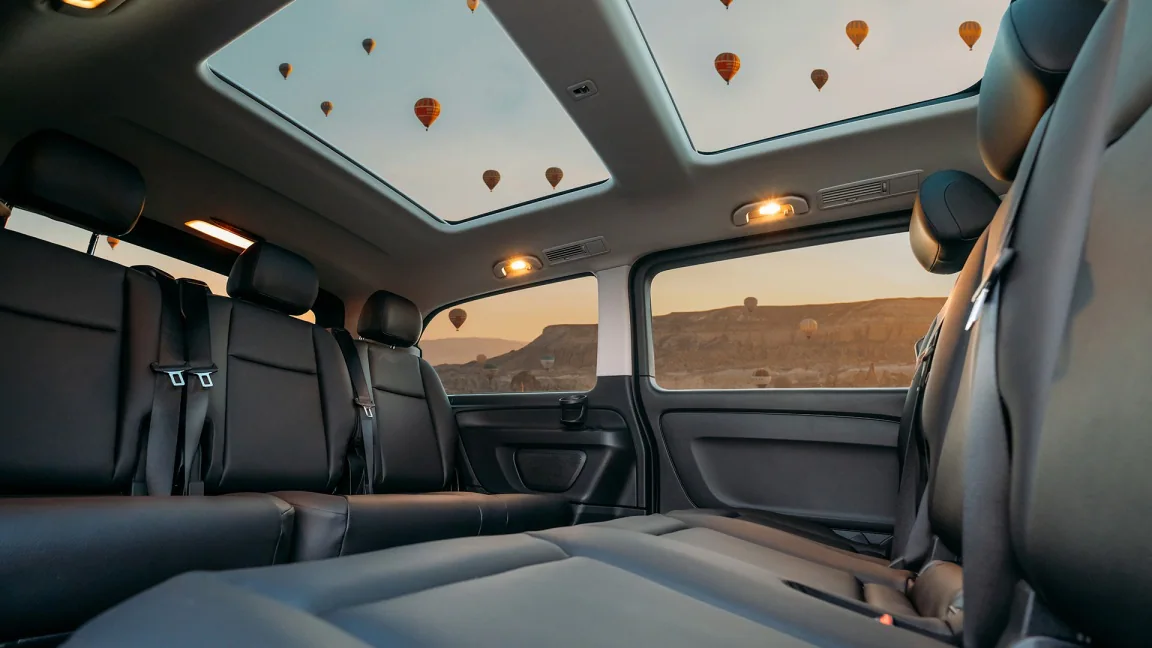 Vito Tourer SELECT’te standart olarak bulunan kol dayanaklı konfor tipi üçlü yolcu koltukları yolcuların kişisel ihtiyaçlarına göre uyarlanabilir. Koltuk sırt dayanaklarının eğimi ve baş desteklerinin yüksekliği ayarlanabilir. EASY-ENTRY fonksiyonu arkaya doğru rahat bir erişim sunar. Pratik kilitleme tertibatlı kılavuz kızak sistemi sayesinde koltukların pozisyonu değişkendir.